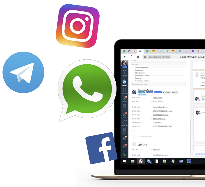 Общайтесь с клиентами из CRM через привычные для для них мессенджеры. Не важно откуда написал клиент: WhatsApp, Instagram, Facebook, ВКонтакте, Telegram, Viber, WeChat, Авито... все сообщения попадут в amoCRM, не нужно использовать разные приложения, все сообщения можно обрабатывать в одном окне.