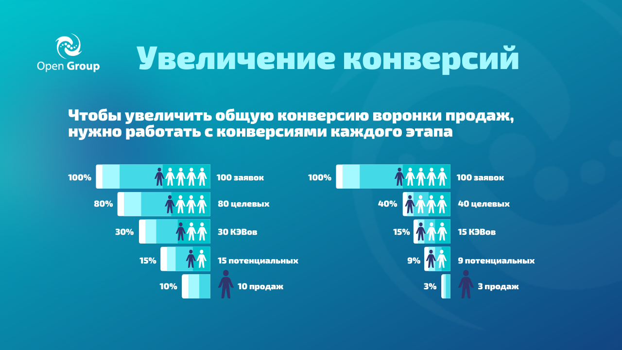 По статистике, клиенты, дошедшие до ключевого этапа, с вероятностью до 74% покупают, кто не дошёл, лишь до 18%
