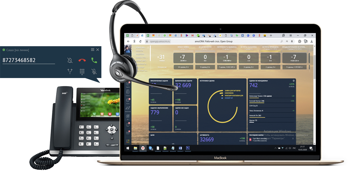 Звоните из CRM по клику из любой точки мира, там где есть интернет. Прослушивайте записи разговоров и контролируйте качество обслуживания. Общайтесь с клиентами со стационарного телефона, компьютера, планшета или мобильного телефона. Используйте многоканальные номера и не теряйте ни одного звонка.